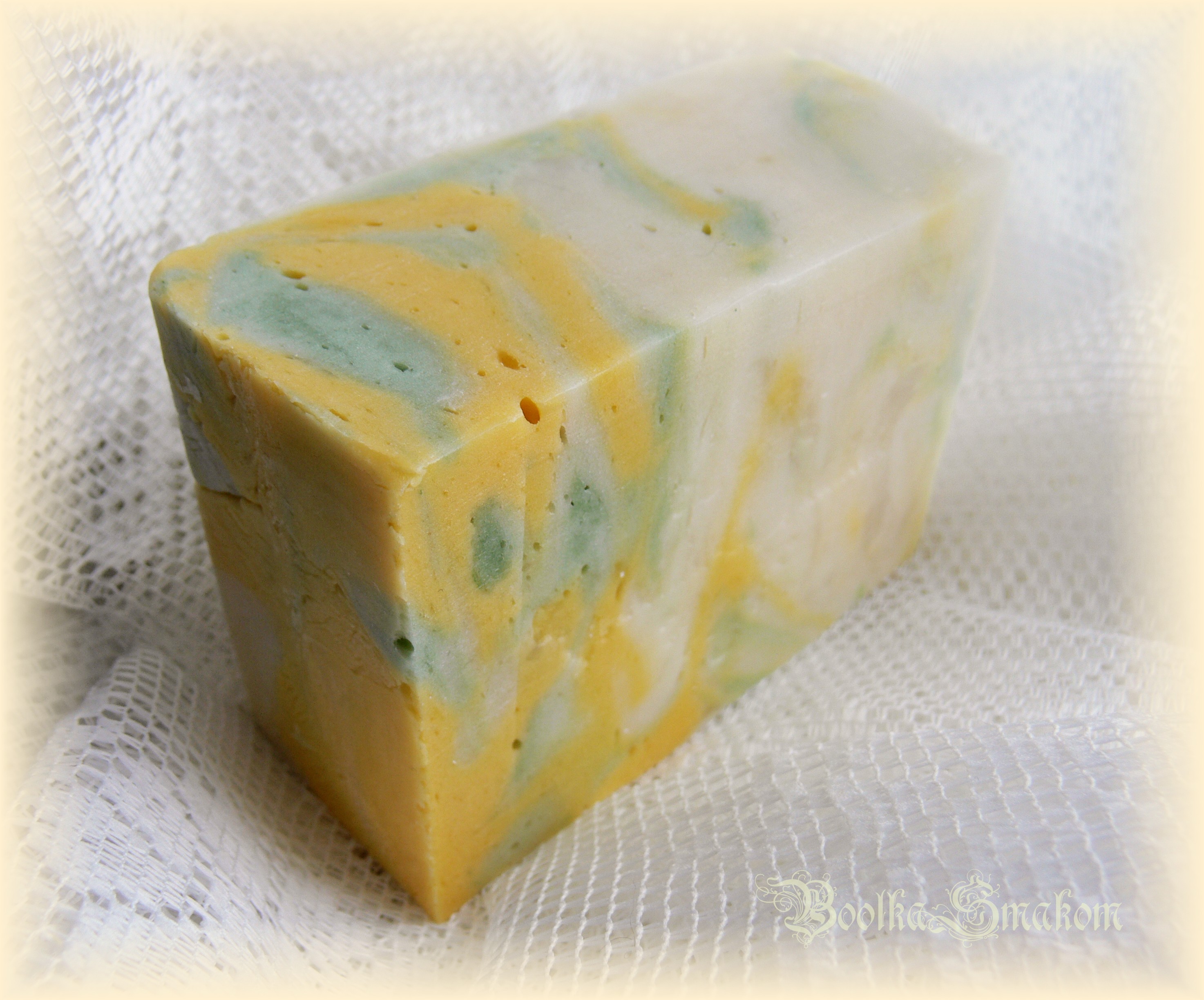 Натриевые соли жирных кислот масла оливкового, пальмового и пальмоядрового, родниковая вода; ароматическое масло, косметический пигмент. Масло облепиховое, масло оливковое.