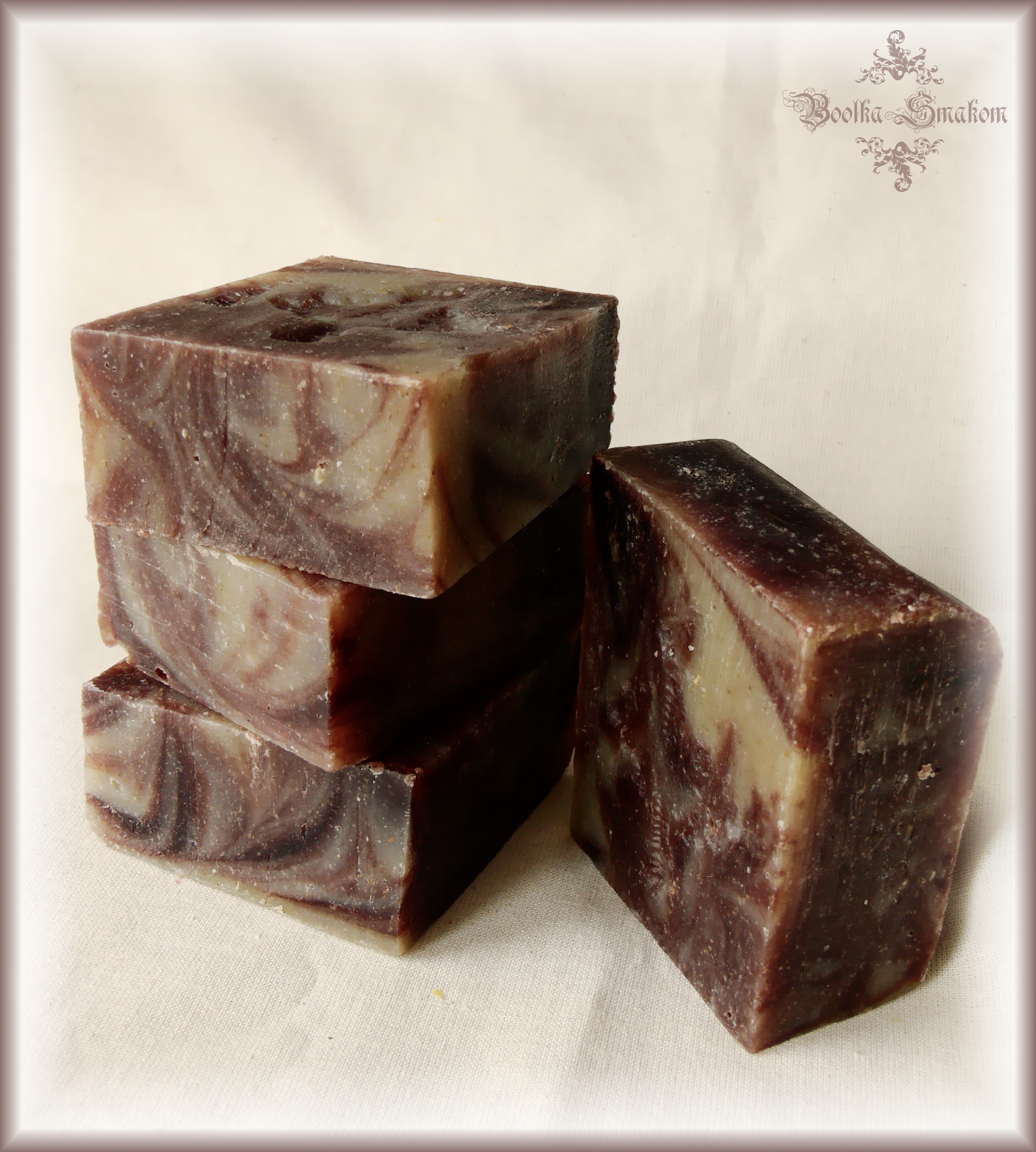 Масло какао, содержащееся в молотых какао-бобах и масло виноградной косточки, добавленые в мыло на стадии "следа" делают кожу более гладкой и подтянутой.